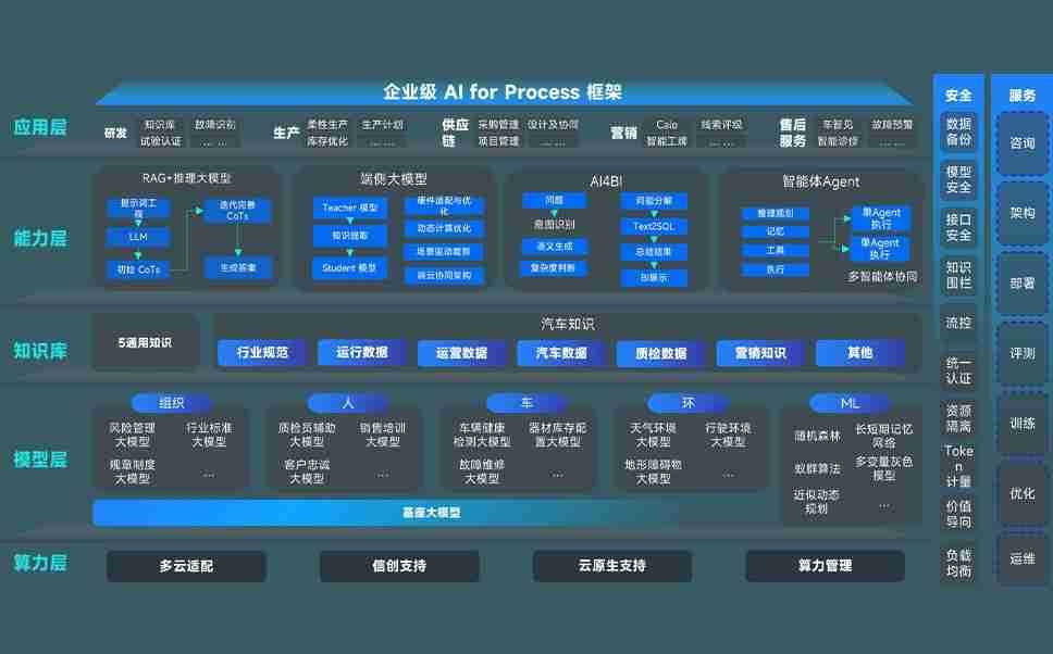 yd2333云顶电子游戏问学智车解决方案是一套基于AI技术的汽车行业智能化系统,,覆盖从底层算力到顶层AI应用的全栈方案。。。方案由算力层、、、、模型层和应用层组成:算力层,,,,方案支持多种一体机配置,,,具备云端灵活部署、、多云适配以及动态优化计算资源的能力;模型层,,,yd2333云顶电子游戏问学平台版提供了企业级AI应用一站式构建与管理平台,,,支持基于后训练强化技术的汽车企业专属模型的训练、、评测和运营;应用层,,,,yd2333云顶电子游戏问学DeepSeek版提供包括超级员工、、智能招采、、、智能营销、、、智能客服、、AI for BI等一系列解决方案,,可助力汽车行业实现数字化转型,,,,让管理更智能、、响应更敏捷。。