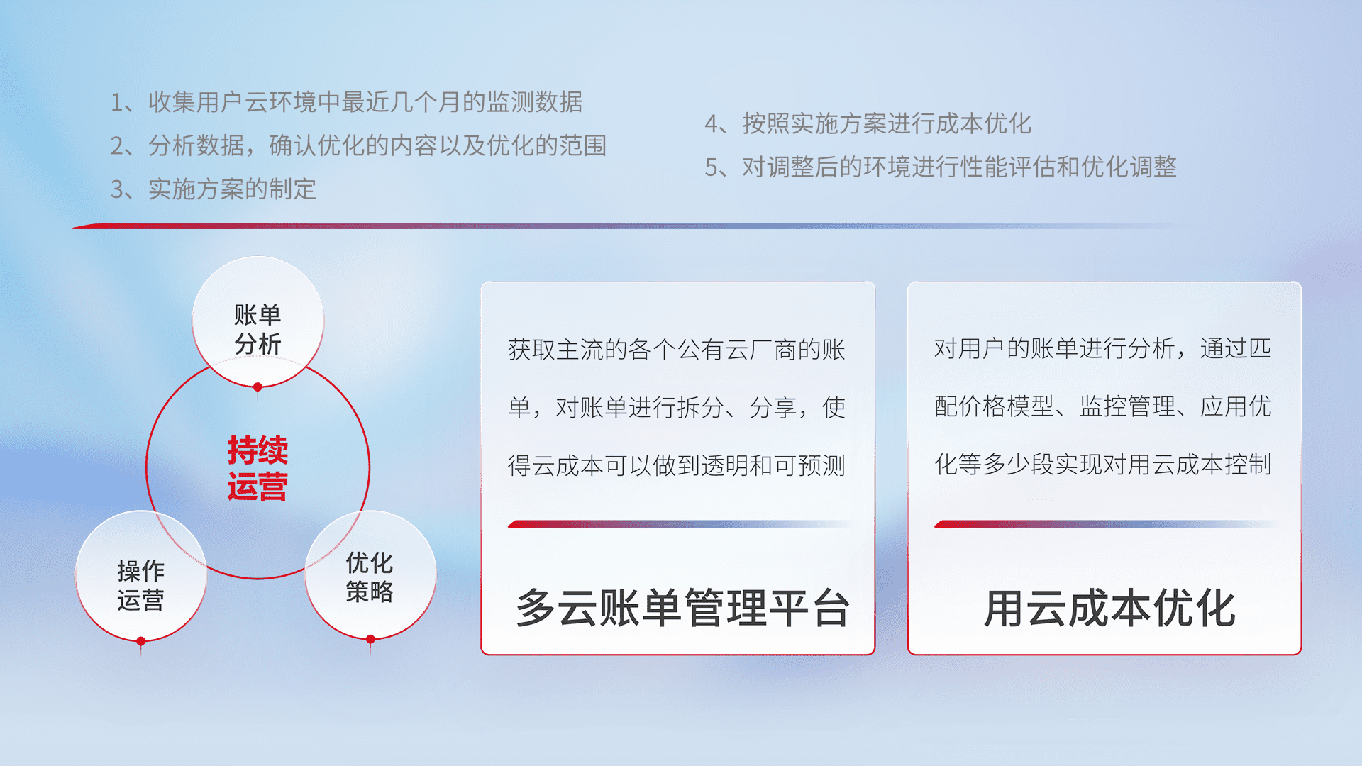 监控业务系统资源开销,,,对资源的消耗精确计量,,实现费用的透明化管理,,,不断提升资源使用率,,,,调整资源购买方式,,,降低资源费用成本,,,,用云成本可预测、、用云费用可优化,,云资源配额有据可依。。。。